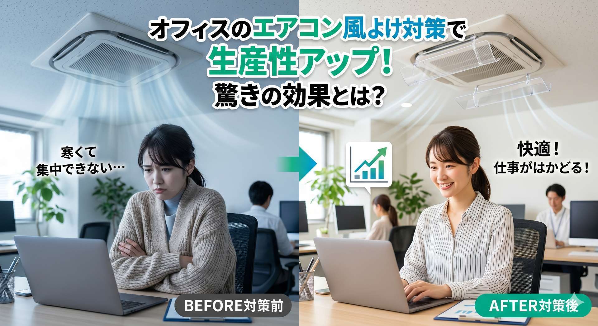 これらを踏まえると、エアコン風よけ対策はオフィスの生産性向上に不可欠な施策であり、今後ますます注目されるべきテーマです。さあ、あなたの職場でも今日からできる簡単な風よけ対策を始めて、驚きの効果を実感してみませんか?社員一人ひとりが快適に働ける環境は、会社全体の成長と成功に直結するのです。